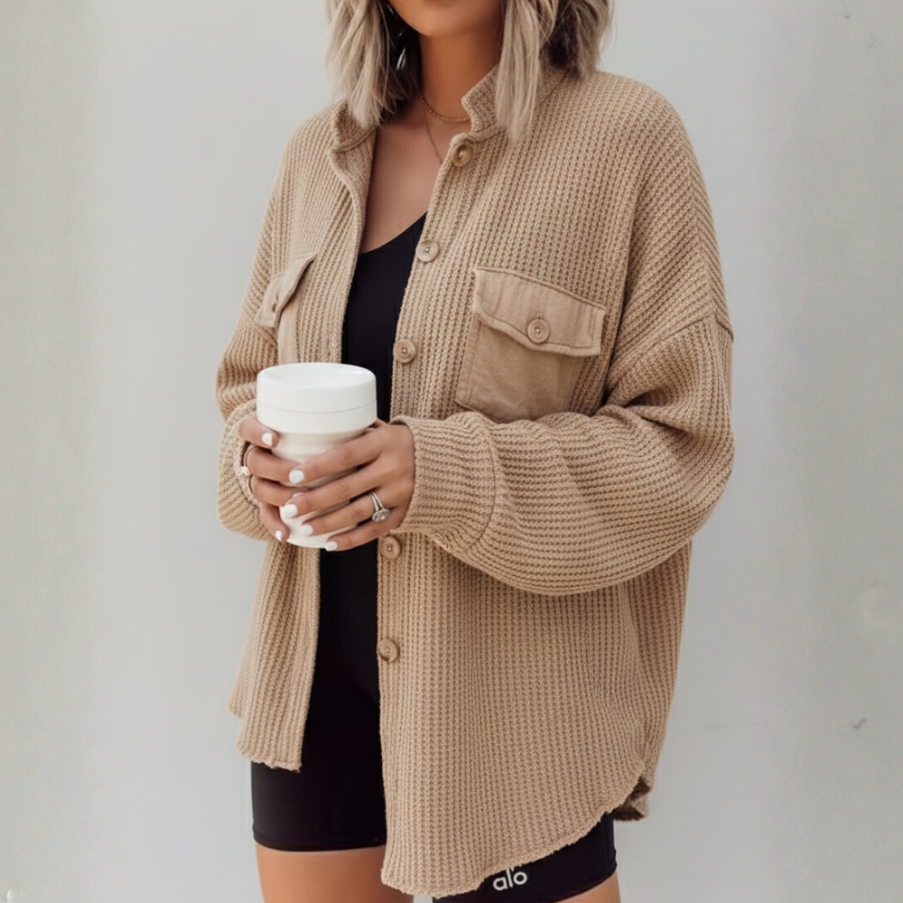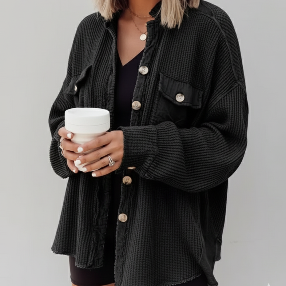 Sa coupe légèrement oversize épouse la silhouette tout en offrant une liberté de mouvement optimale. Le velours côtelé apporte de la structure et une texture douce, tandis que les boutons ton sur ton et les poches plaquées ajoutent une note de modernité.